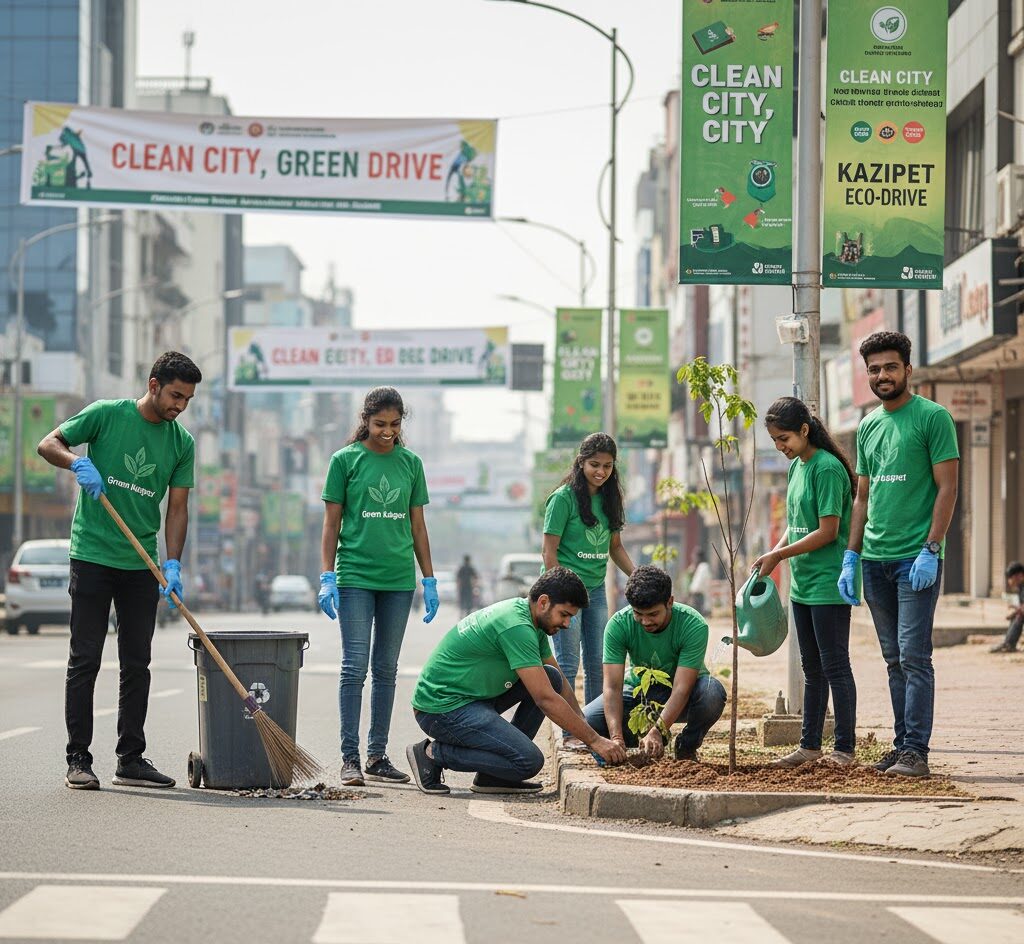 In a remarkable show of civic responsibility, a group of young residents in Kazipet have come together to launch the “Clean Kazipet – Green Kazipet” campaign aimed at keeping the city’s public areas clean and environmentally friendly. The initiative, which began near the Kazipet railway station, has now expanded to cover parks, temple surroundings, and market areas.